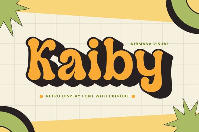 Kaiby Display font is made for personal use. Get the full version of the fonts if you want to use it for commercial purposes by purchasing the licenses here: https://creativemarket.com/sgtnirmana/289158475-Kaiby-Retro-Logo-Font?u=fontlot123