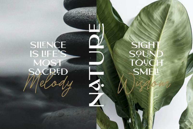 Introducing KAIVALYA – Cultural Type, created by ikiiko. A cultural font that has beautiful gestures, with a touch of tradition. Kaivalya is a serif typeface with many stylistic and ligature to choose. This typeface is perfect for an elegant logo, yoga & meditation stuff, beauty product, packaging product, spa, community logo, magazine, quotes, or simply as a stylish text overlay to any background image.