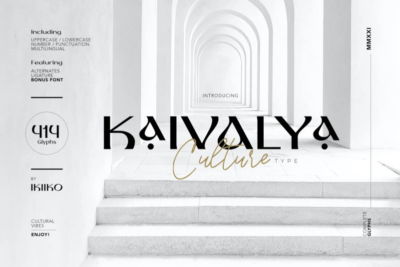 Link to purchase full version and commercial license: https://creativemarket.com/ikiiko/6686287-KAIVALYA-Culture-Type?u=fontlot123