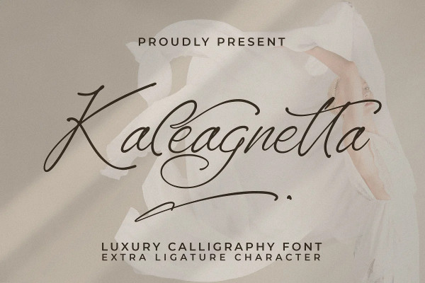 Kaleagnetta Font – Luxury Calligraphy Font, from Integritype Studio, is a premium Luxury Calligraphy Font, perfect for any project like: logos, branding projects, homewares designs, product packaging, mugs, quotes, posters, shopping bags, t-shirts, covers books, business cards, invitation cards, greeting cards, labels, photography, watermarks, special events and all your other luxury projects that require a premium taste.