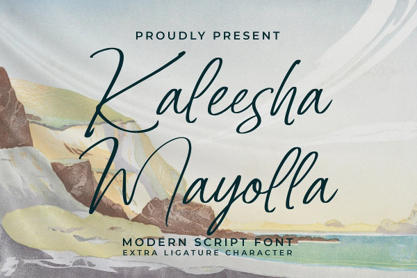 Kaleesha Mayolla Font – Modern Script Font, from Integritype Studio, is a premium Modern Script Font, perfect for any project like: logos, branding projects, homewares designs, product packaging, mugs, quotes, posters, shopping bags, t-shirts, covers books, business cards, invitation cards, greeting cards, labels, photography, watermarks, special events and all your other luxury projects that require a premium taste.