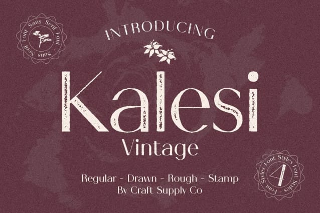 In summary, Kalesi Vintage is more than a font; it’s a design tool that effortlessly combines rustic appeal with timeless elegance. With its versatile usage and expressive impact, this sans serif font adorned with stamp and rough effects promises to enhance your display projects, infusing them with character and charm.