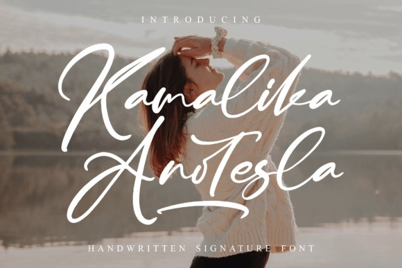 Kamalika Anotesla – Handwritten Signature Font is suitable for any projects such as logos, branding projects, homeware designs, product packaging, mugs, quotes, posters, shopping bags, t-shirts, book covers, name cards, invitation cards, greeting cards, labels, photography, watermark, special events, and all your other lovely projects that need a beautiful script taste.