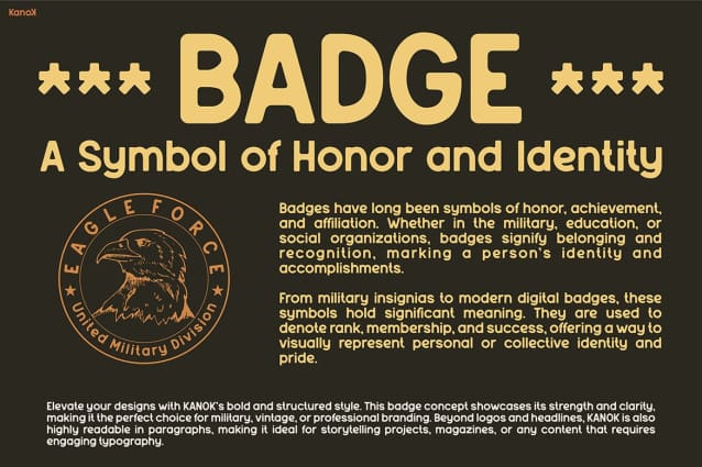 Kanok Display Font, is a beautifully crafted typeface that embodies the spirit of vintage design. With bold, structured letterforms and a nostalgic feel, this font is perfect for projects that seek to capture a sense of history and authenticity. Inspired by mid-century typography, Kanok Display offers a classic aesthetic while maintaining modern versatility.