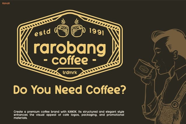 The font features a bold and refined style with smooth curves and sharp edges, making it ideal for designs that require both strength and sophistication. Its timeless appeal makes it suitable for branding, packaging, and editorial use. Whether applied to beer labels, restaurant menus, or vintage-themed merchandise, Kanok Display enhances the visual experience with its striking presence.