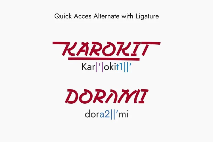 Introduces a new display typeface. Karokit Display Font is inspired by modern Japanese letters which are made with care and love. Karokit features Opentype and multilingual accents along with numbers and symbols. With more than 385 glyphs that can be used for any purpose such as logos, brand identity, clothing, posters, advertisements, titles, invitations, stationery and more.