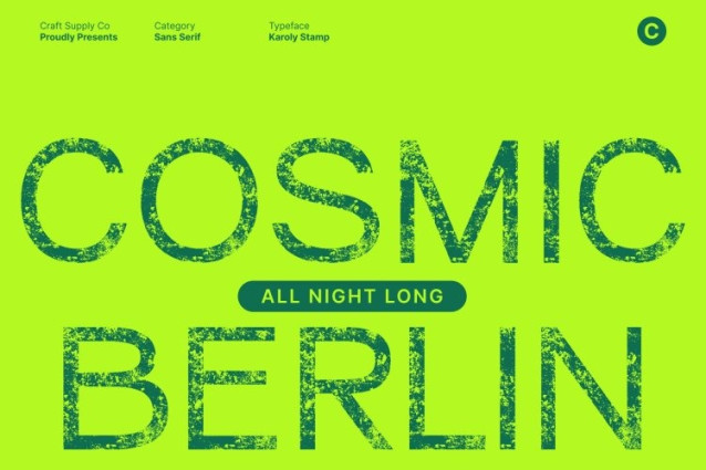 This font excels in display settings, making it perfect for branding, packaging, editorial headers, posters, and logo design. Its clean geometry ensures a strong, contemporary identity, while the stamped texture adds personality, warmth, and visual depth.