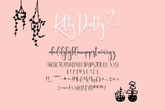 Katty Patty Font is a thin-lettered and delicate script font. Add it confidently to your favorite creations, and let yourself be amazed by the outcome generated. This font is PUA encoded, which means you can access all of the amazing glyphs and ligatures with ease!