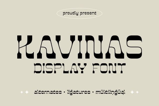 Kavinas Vintage Font is an unique display font. Kavinas font comes with alternates characters and ligatures characters that will give you a wide range to create an attractive typographic design result for many different projects such as logo design, branding, poster, magazine, labels, merchandise, invitation, presentation, advertising, quotes and so much more!