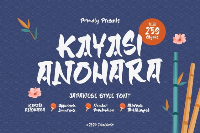 This font is used only for demos (Demo license). If you want to use this font for commercial use please contact: https://creativemarket.com/Idealeksisstd/91983765-Kayasi-Anohara?u=fontlot123