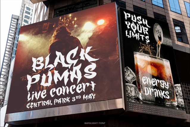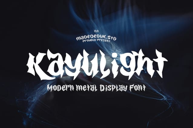 Kayulight Display Font is a modern gothic font, made with a heavy sharp impression and supported by alternative with references to various letters that I combine. Suitable for merchandise, clothing, apparel, badges, logos, poster titles, and much more.