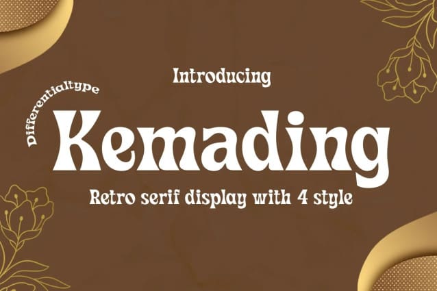 Kemading Font is a retro serif font that has a vintage, cute, fun and bold feel. Comes with four styles, regular, italic, outline and outline italic. Kemading’s design is unique and energetic, making it perfect for adding a touch of fun nostalgia to logos, crafts, posters, branding, stickers and many other projects.