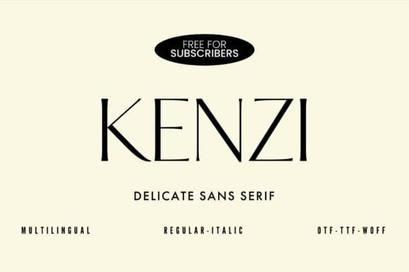 Kenzi Font – the epitome of elegance and modernity. This chic and delicate sans serif typeface offers a refined simplicity, perfect for any design project. Its clean lines and balanced characters exude sophistication, making it a timeless choice for logos, branding, and editorial layouts. With excellent legibility and versatility, ‘Kenzi’ empowers your creations to stand out and leaves a lasting impression on your audience. Embrace the future of typography with ‘Kenzi’ and elevate your designs to new heights!”