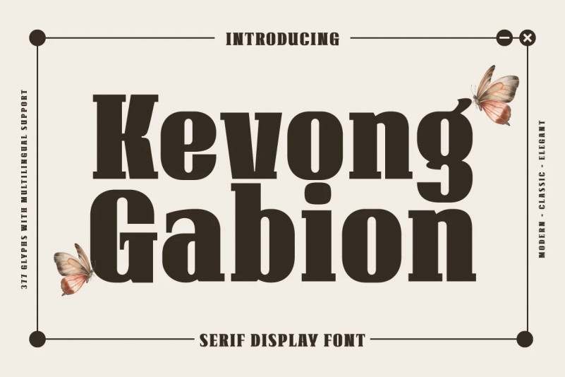 Kevong Gabion Serif font is the epitome of timeless elegance and classic style. The font boasts a sleek and sophisticated design that is perfect for a range of projects, from branding to editorial design. Its classic serif form is perfect for adding a touch of sophistication to your work.
