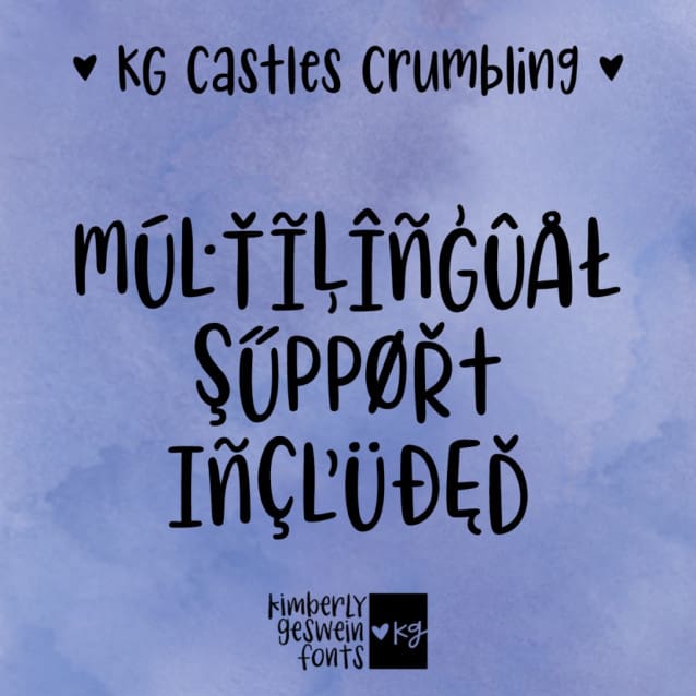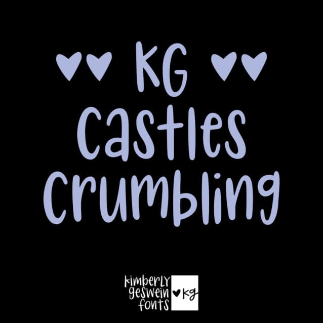 KG Castles Crumbling Font is a happy and playful font full of personality and spark. I enjoy playing with letters to create whimsical shapes. Perfect for handcrafted goods, birthday cards, children’s products, and more, this font is created with optimism and fun in mind. Life is short and we need to have a good time.