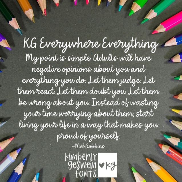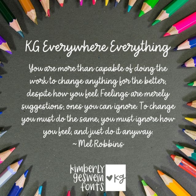 This font is made for personal use. Get the full version of the fonts if you want to use it for commercial purposes by purchasing the licenses here: https://kimberlygeswein.com/downloads/kg-everywhere-everything/