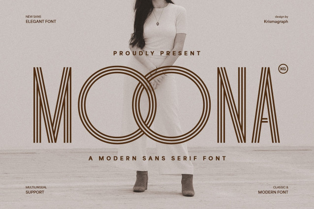 KG Moona Font, a modern sans serif font with a clean, elegant design that blends timeless sophistication with contemporary style. Featuring unique double-line strokes and sleek geometric construction, MOONA stands out as a refined choice for designers seeking clarity and character in their typography.