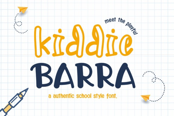 Kiddie Barra Font, an engaging, school-inspired font that exudes authenticity. Presented in ‘Regular’ and ‘Hollow’ variations, Kiddie Barra transports you back to the charm of hand-drafted notes and the nostalgia of school days. Ideal for children’s projects, instructional materials, and playful posters, or even for infusing gaming interfaces and original branding with a dash of youthful enthusiasm. Kiddie Barra bursts with the exuberance of childhood creativity and lighthearted energy. Seamlessly adaptable to print and digital mediums—Kiddie Barra injects a dose of joy into any design. To truly harness its playful personality, intermingle its two unique styles to create designs that not only grabs attention but also conjures smiles across every creative endeavour you undertake.