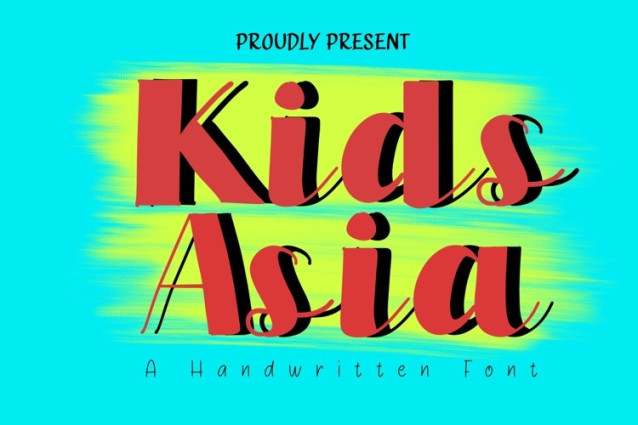 Kids Asia Font, it would be a perfect choice to design posters, affiches, logos, t-shirt and magazine prints, eye-pleasing typographic designs and more.