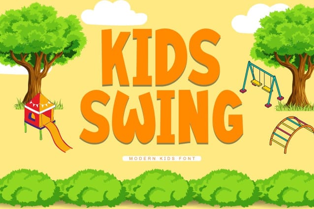 Add a touch of whimsy and creativity to your designs with Kids Swing, the modern sans kids font that turns every project into a playful adventure.
