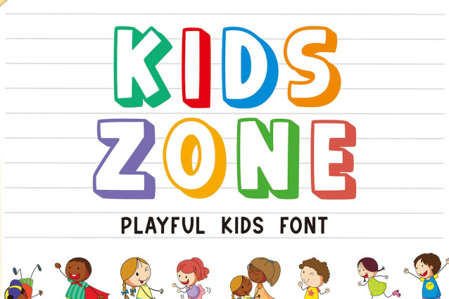 KIDSZONE font adds a cheerful and animated flair to any design, making it an ideal choice for those seeking a vibrant and child-friendly aesthetic in their creations. Its charming appeal resonates well with activities and occasions that celebrate the imaginative and spirited essence of childhood