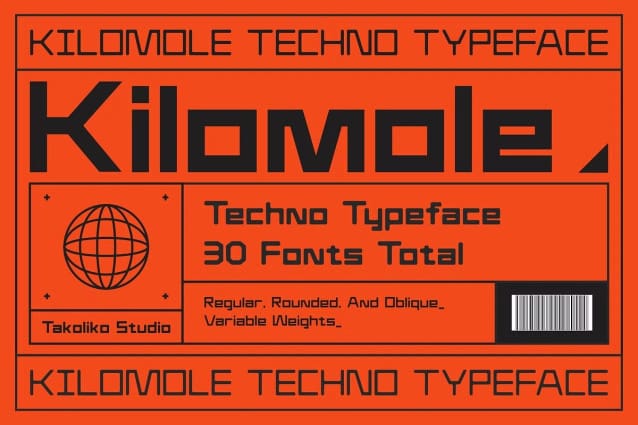 Kilomole Techno Font Family, the contemporary techno typeface ready to transform your designs. It features not just one, but two distinct styles – regular and rounded, offering versatility for various design concepts. With its cubic aesthetic, Kilomole invokes a sense of resilience synonymous with durable structures, while seamlessly transporting you into a futuristic vibe. This unique font truly champions the gritty edge of urban sophistication, married with the sleek, streamlined look of tomorrow. Enrich your font collection with the cutting-edge appeal of Kilomole Techno typeface.