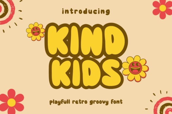 Kind Kids Font is a fun and retro font, it’s perfect for designs that need a playful, cheery accent. KindKids is suitable for book covers, posters, packaging, merchandise, logotypes, and many more!