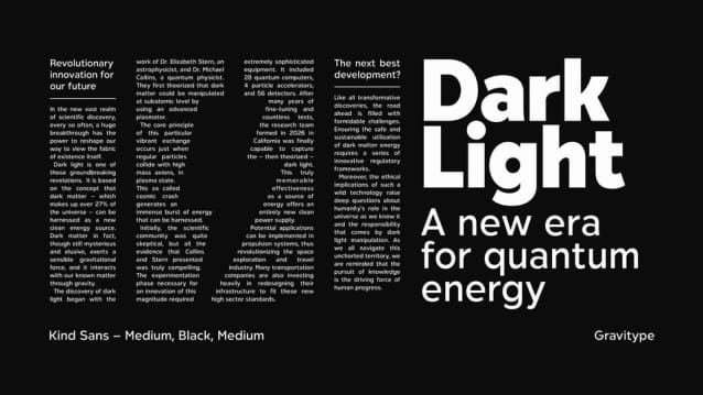 More than functionality. Kind Sans also embodies commitment to aesthetic excellence; its unique style displays a perfect balance between simplicity and elegance. Harmony and recognizability were key concepts to focus on while crafting the glyphs.