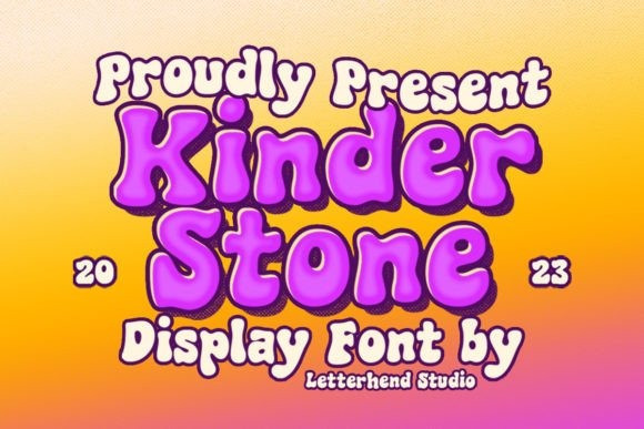 Kinder Stone Font, add a pop of personality to your designs! This fun and whimsical font is like a playful friend. Its rounded, bubbly letters give it a friendly and approachable feel, while its cartoon-like appearance adds a touch of humor and playfulness. Use Kinder Stone to create logos, posters, and other designs that need a dash of personality and fun.