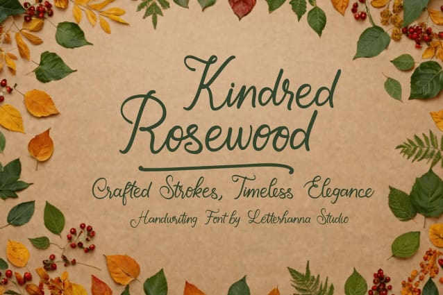 Kindred Rosewood Font is a beautiful new handwriting script font that combines organic, flowing letterforms with a touch of elegance. Its curves and strokes evoke a warm, natural feeling, making it perfect for a wide range of creative projects, from branding and logos to invitations and quotes. The font’s unique balance of readability and artistic flair gives it a sophisticated yet approachable look, ideal for adding personality to designs while maintaining clarity. Whether used for modern designs or vintage-inspired projects, Kindred Rosewood brings a timeless charm with a contemporary twist.