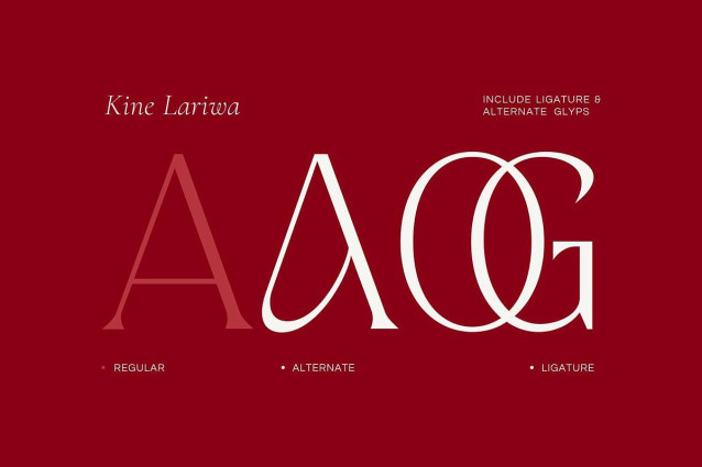 Whether used for bold headlines, refined editorial spreads, or boutique brand identities, Kine Lariwa brings an air of luxury and modern artistry to every project.