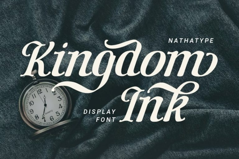 Kingdom Ink Display Font, a display font carefully crafted by our professional designers for the highest quality font. Its bold, prominent characters are perfect to add effects and certain characters to your designs. In addition, the professional, outstanding appearances of this font convey that it will leave amazing impressions to your audience. Some of the letters have swinging end wipes to look visually interesting. On the other hand, its aesthetic, low contrast shapes are inapplicable for small text sizes. Furthermore, you can enjoy the available features here.