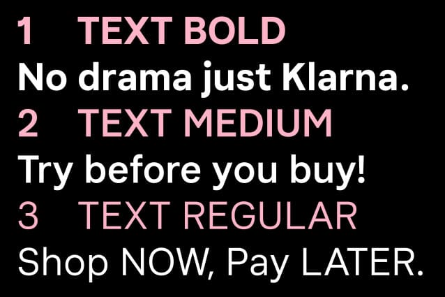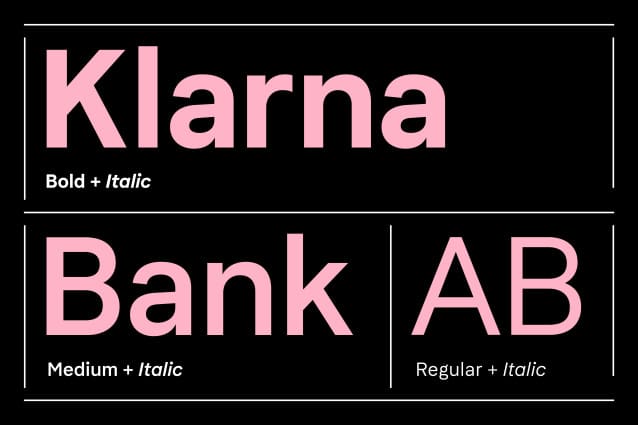 Based in Sweden, Klarna is one of Europe’s largest banks and provides payment solutions for upwards of 80 million customers via 190,000 merchants across 17 countries. Klarna had previously commissioned a custom typeface, but over time and application felt that it wasn’t performing as required across the bank’s multiple platforms and locales. Looking to simultaneously refresh its typography programme and create an evergreen solution that was technologically sound, Colophon Foundry was approached to evaluate the existing offering and suggest a new approach.