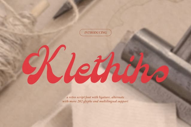 Klethih Retro Font | Retro Script Font, from Denustudios, suitable for any projects such as: logos, branding projects, homeware designs, product packaging, mugs, quotes, posters, shopping bags, t-shirts, book covers, name card, invitation cards, greeting cards, label, photography, watermark, special events, and all your other lovely projects that need a Retro Script Font taste.