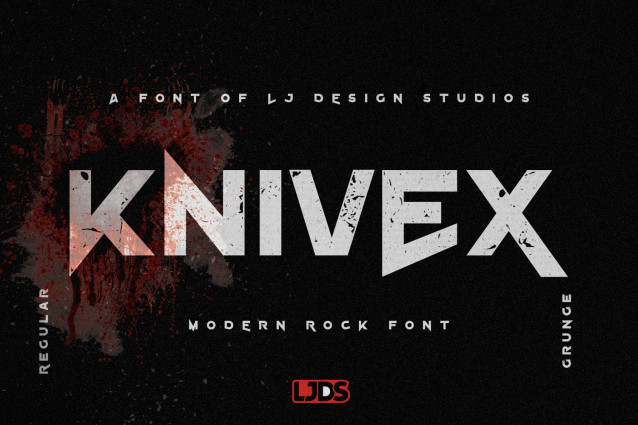 Knivex Font is a typeface with a simple, geometric style modified to give an aggressive appearance, inspired by modern and industrial rock music. At the same time, it’s a conservative style that seeks to revive the air of a bygone era.