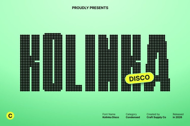 Kolinka Disco Font This is a bold inktrap sans serif font designed to make a powerful visual statement. Its strong letterforms are enhanced with distinctive inktrap detailing, adding depth, texture, and personality. Combined with a disco-inspired rhythm, the font feels lively, expressive, and ready to shine under bright lights.