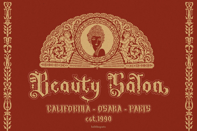 Kolithagente Font Masterfully designed to become a strong type mix Victorian and Blackletter type, this font has the potential to bring each of your creative ideas to the highest level. Come with different style combine with ligatures and special alternative glyphs so you can create a lots with layouts and compositions. This font is perfectly made to be a logo, and the other various formal forms such as invitations, labels, logos, magazines, books cover, greeting cards, packaging, fashion, make up, novels, labels whether you’re creating digital content or printed materials.