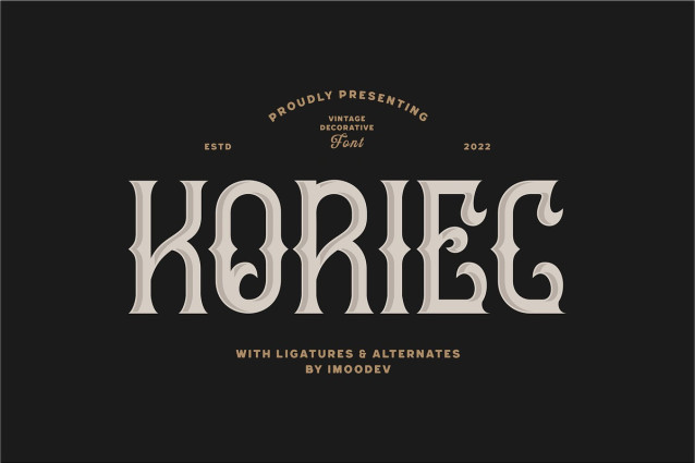 Koriec Vintage Font a captivating and old vintage font that breathes life into any design. Drawing inspiration from the ornate typography of the art nouveau and victorian eras.