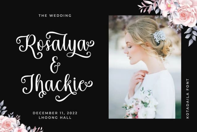 Kotadaila Font is a Script Font that includes a complete set of uppercase and lowercase letters, multilingual symbols, numbers, punctuation, alternatives and ligatures. This font has a Modern Elegant Style, perfect for branding, logos, invitations, masterheads and more. Kotadaila features OpenType style alternatives, International binders and support for most Western Languages included. To enable the OpenType Stylistic alternative, you need a program that supports OpenType features such as Adobe Illustrator CS, Adobe Indesign & CorelDraw X6-X7, Microsoft Word 2010 or later.