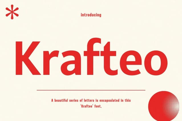 Krafteo Font, This typeface embodies a symmetrical and balanced rhythm through a unique blend of different sources of inspiration. Proportions are precisely adjusted with subtle contours and subtle contrasts. These shapes give the font an attractive look without compromising elegance and minimalism, ensuring that any glyph is suitable for any graphic design purpose such as brochures, videos, advertising branding, logos, magazines, layouts, posters, publication templates, games and others