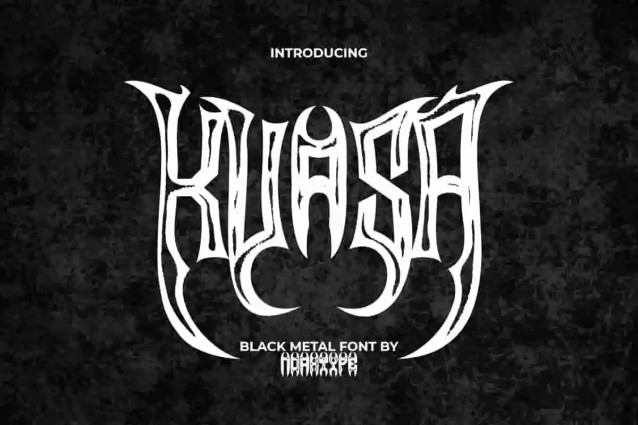 Kuasa Font is a unique and decorative Black Metal font by NoahType. This font character is made with enough detail so that it can give a creepy and deadly look to any design. It will be good for any designs, such as custom design, brand image, poster, label, invitation, cover, marketing material, menu, printing, product packaging, quotes, signage, website, and many more!