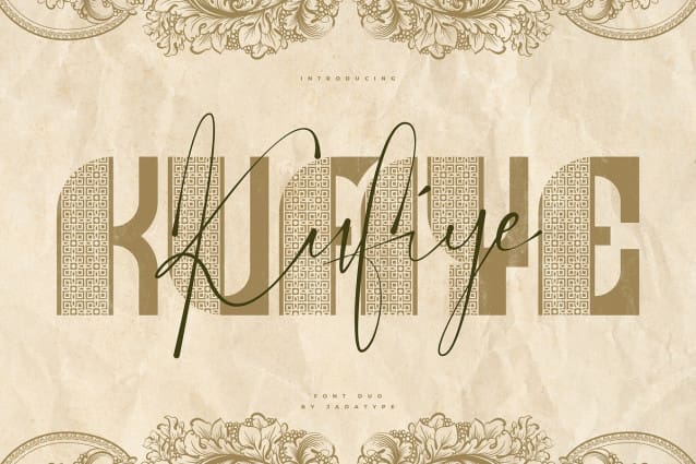 Kufiye Font Duo, is a Font duo font that has Script & Decorative Style. Suitable for product, Branding, social media, logotype and so on. contains standard English letters, numbers, punctuation, and several accents that support multilingualism.