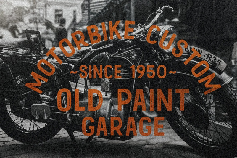 Kustom Culture Display font was born from an inspiring vintage old paint display. This font gives a vintage, classic, and old feel, inspired by authentic old paint effects. Kustom Culture font is perfect for you looking for a vintage and logotype. Suitable for any graphic designs such as branding materials, t-shirts, badges, print, packaging, label, business cards, logos, posters, t-shirts, quotes .etc
