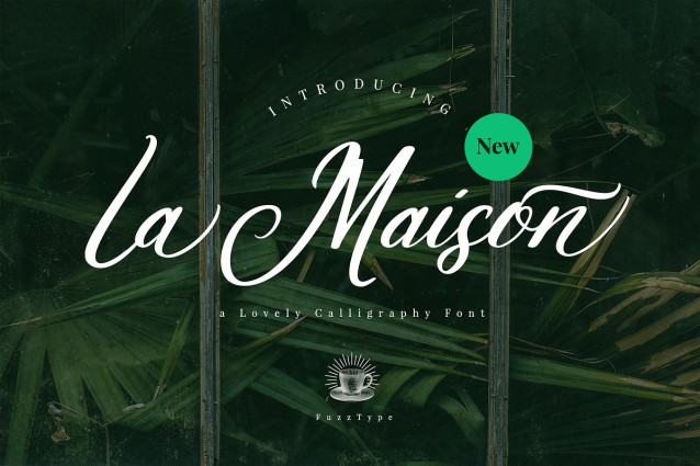 La Maison Script Font is a lovely calligraphy script font, it shows elegant, feminine, crafty things. It contains more than 400 glyphs, including stylistic alternates, swash, and ligatures. You can use it on any kind of media such as flyer, wedding invitation, label, packaging, logo, book, blogging etc.