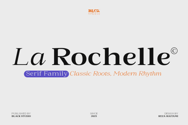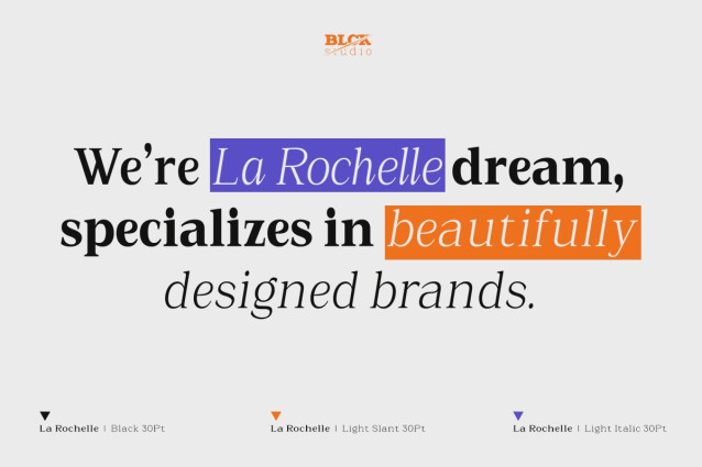 La Rochelle Font is a refined variable serif typeface that blends classical elegance with modern adaptability. Designed with four dynamic axes—Weight, Width, Slant, and Italic—it offers a wide expressive range, from delicate light styles to bold, condensed, and dramatically slanted forms. This flexibility makes La Rochelle a powerful tool for designers working across editorial, branding, and digital platforms, allowing for seamless typographic modulation without sacrificing visual harmony.