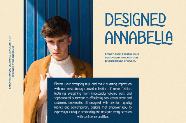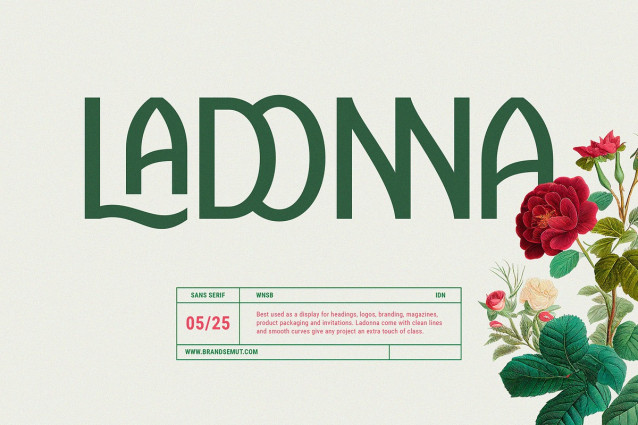 Ladonna Font – Display Sans Serif. Ladonna is a retro and unique font, best used as a display for headings, logos, branding, magazines, product packaging and invitations. Ladonna come with clean lines and smooth curves give any project an extra touch of class.