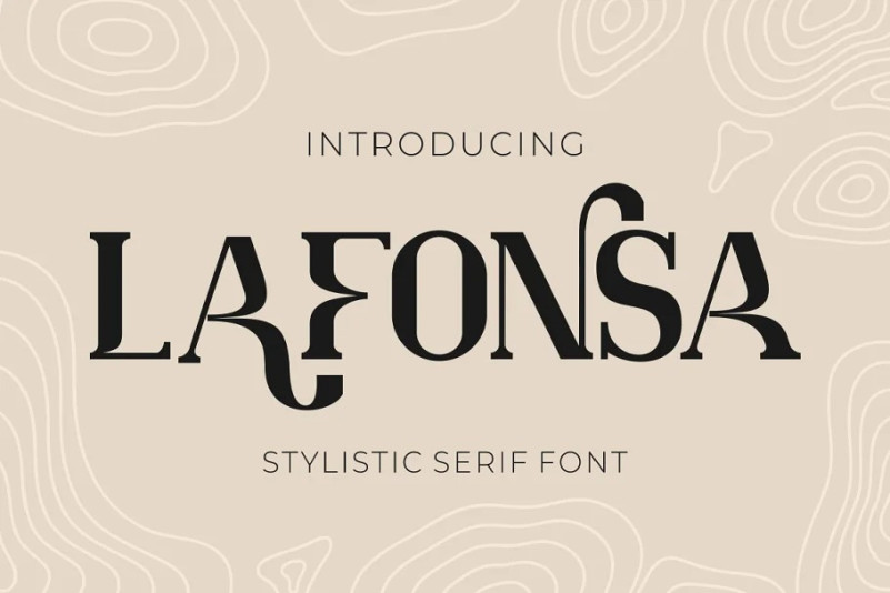 Lafonsa Serif Font . Inspired from stylistic typography and lettering in the unique alphabet combine with serif typography style, you can make letter combinations for lettering with a lot of options. Come with open type feature ( a lot of alternates and end swash), its help you to make great lettering. Lafonsa best uses for Logotype, heading,cover, poster, logos, quotes, product packaging, header, merchandise, social media & greeting cards and many more. Lafonsa is also support multi language.