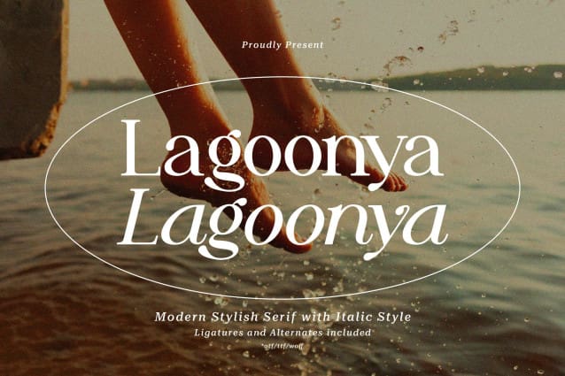 Lagoonya Font | Modern Stylish Serif, from Gracetypestduio, suitable for any projects such as: logos, branding projects, homeware designs, product packaging, mugs, quotes, posters, shopping bags, t-shirts, book covers, name card, invitation cards, greeting cards, label, photography, watermark, special events, and all your other lovely projects that need a Modern Stylish Serif taste.