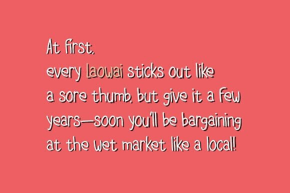 This font is used only for demos (Demo license). If you want to use this font for commercial use please contact: https://www.creativefabrica.com/product/laowai/