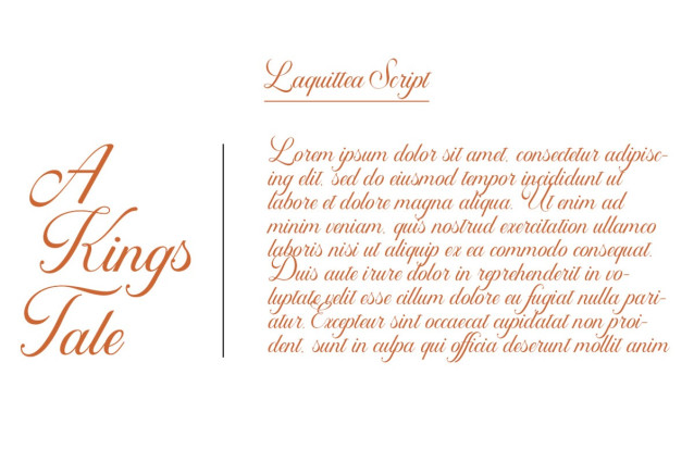 Laquittea Font. This beautiful script is for those who need elegance and style for their designs and is perfect for wedding invitations, saving date cards and feminine branding.